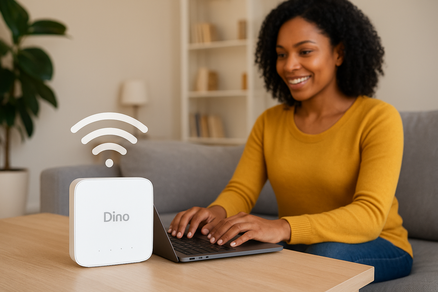 Gebruik Dino als volledig thuisinternet dankzij 4G/LTE-bereik. Geen modem, geen installatie, gewoon SIM erin en klaar.